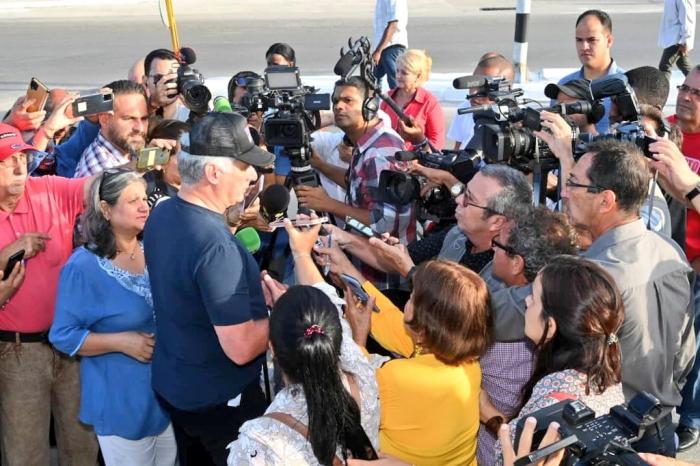 Al salir de la sede de la Asociación Nacional de Agricultores Pequemos (ANAP), donde está ubicado el sitio de votación, el Presidente se acercó a la prensa acreditada para responder interrogantes y emitir sus consideraciones sobre el proceso y otros asuntos.