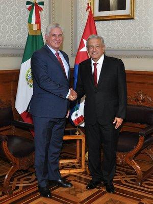 De estos cinco años de gobierno, resaltan además las cuatro visitas a México: para participar en la toma de posesión del presidente Andrés Manuel López Obrador, en 2018; para la primera visita oficial en octubre de 2019; para asistir como invitado de honor al desfile cívico-militar por el Día de la Independencia Mexicana y participar en la VI Cumbre de jefes de Estado y de Gobierno de la CELAC, en septiembre de 2021; y finalmente a Campeche en febrero de 2023, donde ambos mandatarios visitaron el Tren Maya, trascendental obra donde Cuba también está poniendo su «granito de arena», o más literalmente sus piedras rajón.