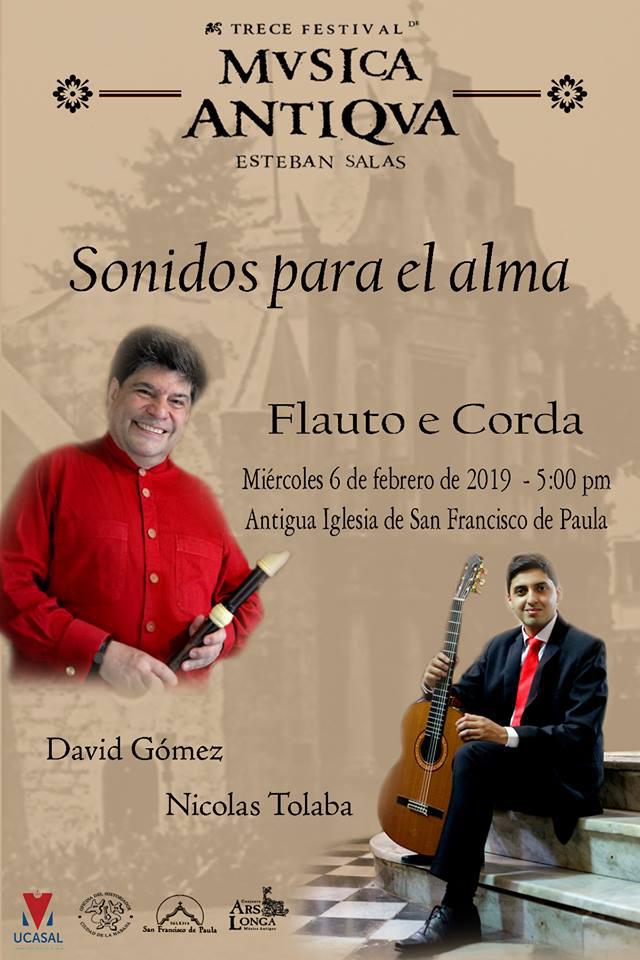 Miércoles 6, 5:00 p.m., XIII Festival de Música Antigua Esteban Salas. Sonidos para el alma. David Gómez (flauta) y Nicolás Tolaba(Corda)