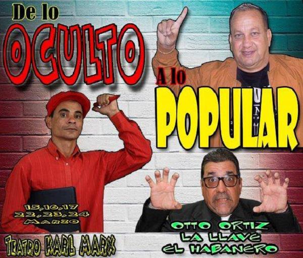 Viernes 22 y sábado 23, 8:30 p.m. y Domingo 24, 5:00 p.m. Centro Promotor del Humor. De lo oculto a lo popular. (El Habanero, La llave). Dirección Artistica: Otto Ortiz.