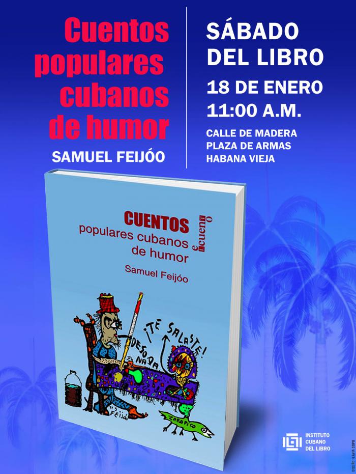 Sábado 18, 11:00 a.m. En el tradicional Sábado del Libro, que organiza el Instituto Cubano del libro, se presenta el volumen Cuentos populares cubanos de humor, de Samuel Feijóo, de la Editorial Letras Cubanas.