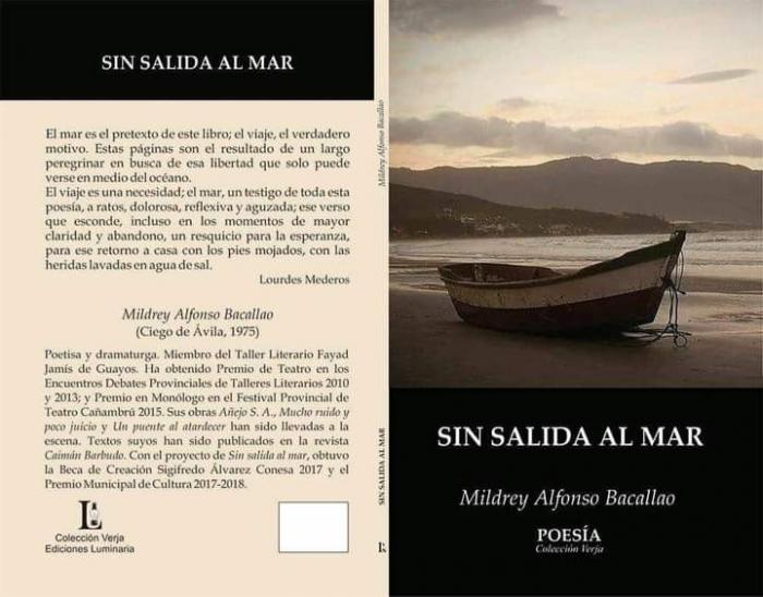 MIldrey Alfonso Bacallao, poetisa y dramaturga avileña, plasma en las páginas de este cuaderno temáticas diversas que ondulan entre las aguas de lo social y lo personal, con una fluidez orgánica. Con el proyecto Sin salida al mar, obtuvo la Beca de Creación Sigifredo Álvarez Conesa 2017 y el Premio Municipal de Cultura 2017-2018.