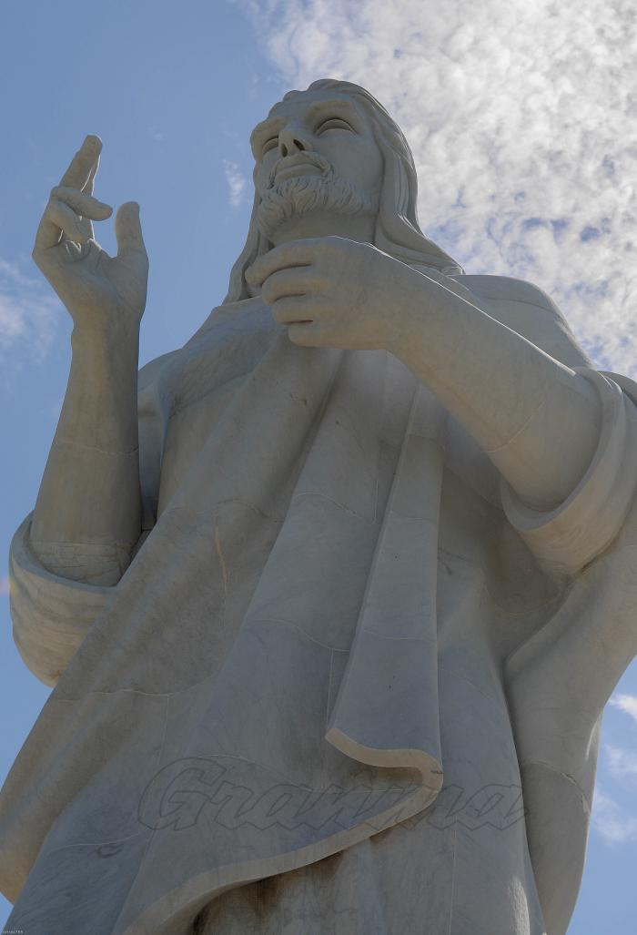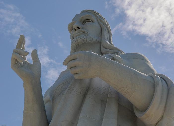 A la colosal obra la autora le dejó los ojos vacíos, para que diera la impresión de mirar a todos desde cualquier lugar donde se colocara una persona a observarle.