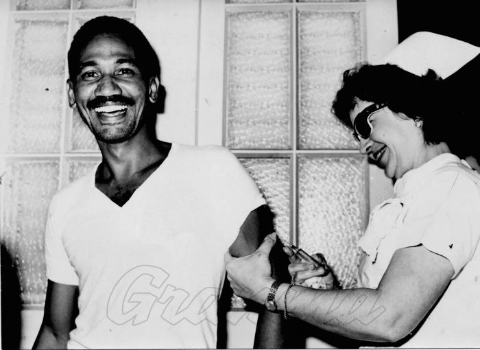 Almeida vacunado por una enfermera durante las campañas preventivas de nuestro país.Foto: Archivo de Granma