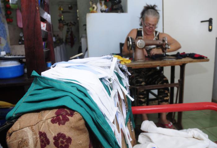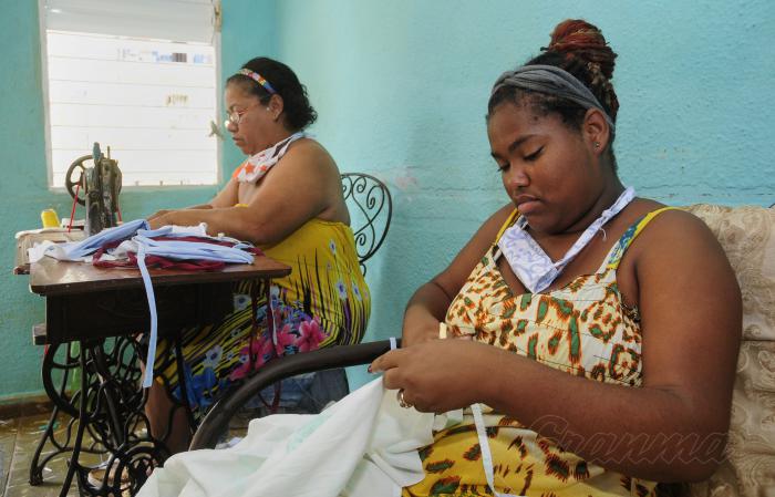 Las salas de muchos hogares están ocupando un digno lugar, se han convertido en talleres textiles y aulas para los estudiantes.Foto: Endrys Correa Vaillant