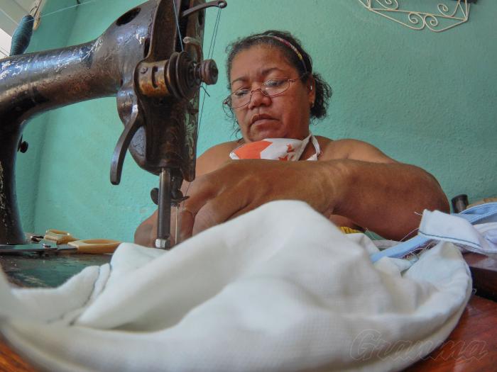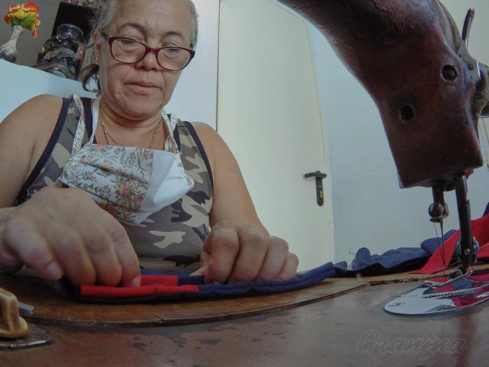 Xiomara Durañones Martínez, produciendo nasobucos en su hogar.Foto: Endrys Correa Vaillant