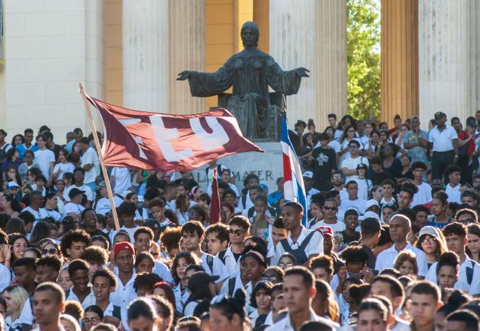 Al dolor del crimen se responde con la fuerza estudiantil avivada en defensa de las conquistas de la Revolución. Foto: Estudios Revolución