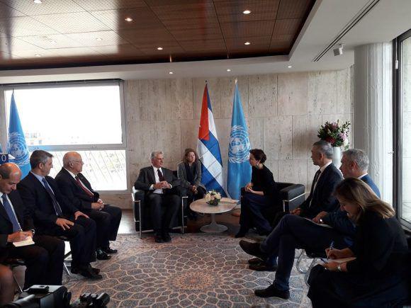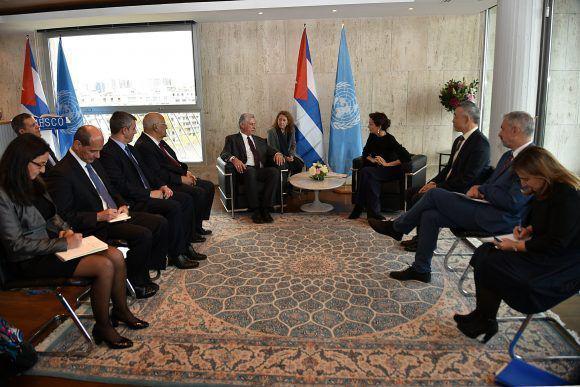 En esta, la primera ocasiónen que ambos se reúnen estando al frente de sus respectivas responsabilidades, el Presidente cubano ratificó la voluntad de nuestro país de estrechar la cooperación con la Unesco y de fortalecer los vínculos que distinguen las relaciones bilaterales.