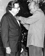Fue el Comandante de la Revolución Juan Almeida Bosque, Héroe de la República de Cuba, miembro del Buró Político del Partido y presidente de la Asociación de Combatientes de la Revolución Cubana, el encargado de colocar la orden al homenajeado, quien calificó el hecho, en ocasión de su 75 cumpleaños, como uno de los instantes más felices de su vida y la mayor honra a que pudiera aspirar.