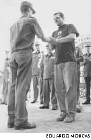 solemne ceremonia efectuada allí, entregó a Otto Rivero, primer secretario de la UJC,
