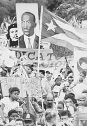 Niños, jóvenes, ancianos, mujeres, hombres; trabajadores, campesinos, combatientes, estudiantes, jubilados, amas de casa: todos pueblo, colmaron la Plaza con nuestro más sagrado símbolo: la bandera cubana, muchas de gran tamaño, y también con numerosos carteles de disímiles facturas, creados con más o menos recursos, y en ellos la expresión clara de confianza y apoyo a Fidel, quien desde la tribuna, junto a otros dirigentes revolucionarios, no cesó de saludar a su pueblo en las dos horas que duró el desfile.