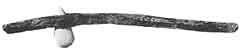 los artefactos.  Hacha petaloide enmangada por los arqueólogos.