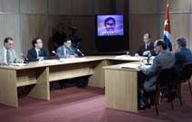 Testimonios de los cinco compatriotas detenidos injustamente en una cárcel de Miami, importantes análisis sobre la demoledora actuación de los abogados de la defensa y noticias recientes sobre las nuevas maniobras de los cabecillas de la mafia anticubana y el gobierno norteamericano centraron la atención de la Mesa Redonda Informativa En las entrañas del monstruo, de este martes. Luego de presentar un panel integrado por los colegas Lázaro Barredo, Eduardo Dimas, Tubal Páez, Rogelio Polanco, y el doctor en Ciencias Jurídicas Rodolfo Dávalos, profesor titular de la Universidad de La Habana, el moderador Randy Alonso propuso la evaluación de un cable de Notimex que reseña la visita de John Ashcroft, fiscal general de EE.UU. a la ciudad de Miami. En sus declaraciones, reseñó Rogelio Polanco, el Procurador aseguró que el veredicto de culpabilidad dictado a cinco cubanos acusados de espiar en Miami es una victoria para los derechos de los ciudadanos de este país y elogió el trabajo de los fiscales federales: "Estoy encantado de que hayan podido probar la culpabilidad de los acusados que enfrentan sentencia que van desde 10 años hasta cadena perpetua". En el día de ayer, según ese mismo cable, se reunió en un restaurante típicamente cubano con los principales líderes de las organizaciones contrarrevolucionarias. De esta forma, apuntó Polanco, este personaje comienza a prejuzgar una decisión que no ha sido adoptada en la Corte, motivo por lo que se preguntó: "¿Comete o no una violación a su mandato? ¿Está o no haciendo un juicio político? ¿Qué quiere decir cuando dice que es una victoria para los ciudadanos norteamericanos? ¿Acaso es una victoria que mueran personas como consecuencia de actividades terroristas? ¿Estamos hablando entonces del derecho a provocar muertes y del derecho a que Cuba se defienda contra los ataques de la mafia anticubana?". Como colofón de esa visita, agregó Randy Alonso, Ashcroft se reunió con José Basulto, cabecilla de la organización terrorista Hermanos al Rescate. Algo que solo puede justificarse, como explicó Eduardo Dimas, por sus características de hombre de extrema derecha, profundamente racista, en contra del aborto y a favor de las armas de fuego. Pero "la ruta de la perfidia", aclaró Lázaro Barredo todavía cuenta con otros dos personajes en el escenario pestilente de Miami: los senadores Lieberman y Bill Nelson, furibundos anticubanos, prestaron oídos el lunes a las eufóricas declaraciones de Mas Santos: "Su presencia entre nosotros en este momento en que el deterioro de la salud de Castro es más evidente, nos da la oportunidad de seguir buscando mecanismos que ayuden a la transición". En una carta a su esposa, el 21 de enero de este año, Ramón Labañino le cuenta detalles del inicio de la vista oral del juicio, que comenzó el 6 de diciembre del 2000: "Los argumentos de los fiscales fueron buenos, con sus toques de ironía, pero ya bastante desinflados, muy diferentes a lo que se decía hace dos años de que atacamos al corazón mismo de la democracia en este país": "Ese día, dice en otra parte Labañino, creo que la exposición de la Defensa fue soberbia, en especial
