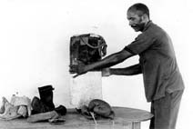 "¡Cómo no! Balones de fútbol, de voleibol, zapatillas de gimnasia, zapatos de cuero para los atletas de remo, guantes de béisbol, etc. Por ahora la gente trabaja en sus propias casas; tratamos de crear condiciones detrás del mismo gimnasio para curar el cuero y localizar un lugar donde instalar las máquinas.