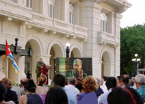 —por sí mismo una obra de notables valores arquitectónicos, edificada en 1928—, el líder de la Revolución se encaminó hacia el área exterior del Museo, donde compartió el acto de inauguración, al igual que la jornada anterior, con artistas, intelectuales y periodistas, delegados a los últimos Congresos de la UNEAC y de la