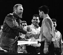 De manos del Comandante en Jefe recibieron el título, el Diario del Che en Bolivia y un diploma de reconocimiento, los 14 graduados más integrales, y también Fidel entregó un certificado a los seis profesores más destacados del curso. El resto de los jóvenes lo obtuvo de manos de sus padres.