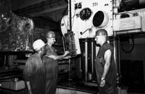 Roberto Sarmiento, mecánico ajustador; Lorenzo Capote y José A. Docampo, electricistas, no operaban, sino supervisaban el funcionamiento de la máquina herramienta, la cual presentó un grave y complejo problema que la sacó de servicio. Ellos lo solucionaron. Los resultados han sido magníficos.