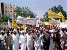 Manifestación en Jartum contra agresión norteamericana en Afganistán. Un volante distribuido por los organizadores afirma que tal y como condenaron los atentados del 11 de septiembre último, repudian también el ataque norteamericano y las bombas arrojadas sobre Kabul. TAMBIEN EN SUDAN Más de 8 000 sudaneses manifestaron este martes en Jartum contra los ataques norteamericanos en Afganistán y contra el presidente estadounidense, George W. Bush, convocados por asociaciones gubernamentales, comprobó un corresponsal de la AFP. Decenas de manifestantes, a bordo de autobuses y camionetas, pasaron por delante de la embajada de Estados Unidos, gritando lemas antinorteamericanos, antes de unirse a la multitud congregada en la plaza situada ante el palacio presidencial, en la capital de Sudán. RECHAZO DE ESTUDIANTES DE NICARAGUA Más del 90% de los estudiantes nicas de la enseñanza superior están en contra de la guerra desatada por Estados Unidos contra Afganistán, revela una encuesta de la Universidad Nacional de Ingeniería. A juicio de los universitarios es "el Tribunal Internacional de Justicia de la ONU quien debería perseguir, juzgar y sentenciar a los implicados en el ataque del 11 de septiembre pasado". Aunque el 96.4% de los