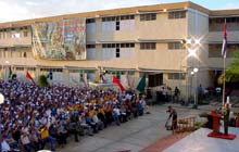 El líder de la Revolución reiteró en sus palabras la posición cubana de condena al terrorismo como el que produjo las horrendas muertes de ciudadanos norteamericanos, y señaló que mientras el mundo vive momentos inciertos y de peligros ocasionados por las crisis económicas y la guerra, nuestro país trabaja para perfeccionar su obra de justicia social en beneficio de todo el pueblo. Una llovizna al principio y al final una más fuerte lluvia no impidieron el desarrollo del acto, que también estuvo presidido por Otto Rivero, primer secretario del Comité Nacional de la UJC; Luis Ignacio Gómez, ministro de Educación; así como los primeros secretarios del Partido y presidentes del Poder Popular en las provincias de Villa Clara, Sancti Spíritus y Cienfuegos, y al que asistieron igualmente familiares de los cinco compatriotas injustamente presos en cárceles de Miami y cientos de estudiantes del centro y sus padres. Elia Miguelina Soria Arteaga, directora de la Escuela, luego de significar la importancia de la labor del trabajador social, dijo que esta escuela constituía un proyecto de vida y de futuro, de la realidad de hoy y símbolo de la obra de la Revolución en beneficio de nuestra sociedad. En nombre de los estudiantes habló Liliet Bárbara Gómez Fernández, quien afirmó que "los muchachos de Fidel", como les dicen popularmente en la calle, sienten el doble orgullo de vivir en Cuba y de pertenecer a una escuela como esta. Dijo que hoy se podía gritar fuerte que Cuba vive y sueña, sueños que se hacen realidad gracias a la Revolución.