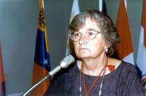 La Patterson cuando intervenía en Lecturas 2001. Días atrás conocí a Katherine Patterson, invitada especial a esta cita de escritores, lectores y editores de todo el mundo y merecedora en 1998, del Premio Hans Christian Andersen de literatura infantil por el conjunto de toda su obra. "Las personas de Cuba son muy acogedoras, eso es algo que me sorprende y emociona", me reveló en una conversación sostenida minutos antes de su intervención en el V Encuentro Iberoamericano de Literatura para Niños y Jóvenes, convocada por este congreso. Esta escritora norteamericana, nacida en 1933, quien posee otras distinciones como el National Book Award, el Newberry, que le ha sido conferido en dos oportunidades y el Premio Nacional de Literatura Infantil de Estados Unidos, recibido en 1977; comentó que ha transitado durante varias décadas por el convulso e intrincado sendero de la vida: "He visto tantos abismos que necesitaban ser erradicados, abismos de cultura, de tiempo, de visiones de razas, de religión, de clase, ideología, política y todo parecía indicar que estos abismos, de alguna manera, debían ser eliminados para los niños. Si yo sola pudiese construir un puente que fuera lo suficientemente bueno para salvar estos abismos sería algo grande, pero la lección que yo he aprendido a través de los años, es que realmente no se puede simplemente construir un puente para los niños, sino que uno mismo tiene que ser el puente". La conferencia basada en sus vivencias personales y en conmovedoras anécdotas, evidenció la gran sensibilidad de esta escritora, y el profundo amor que siente por todos los niños del mundo. En una ocasión, al referirse a la lectura, afirmó: "El mundo es de los lectores, mediante los libros podemos ir a cualquier sitio. Por medio de la lectura podemos penetrar en los misterios de la naturaleza, hasta podemos explorar el corazón y la mente de otros ¡Cuantos tesoros nos esperan! Lo único que tenemos que hacer es abrir las cubiertas y volver la página". El próximo congreso de IBBY,