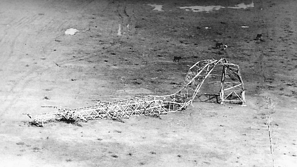 · Así quedaron las torres de transmisión de energía eléctrica en la zona del municipio de Colón. Como podrá apreciarse no es levantarlas, hay que hacerlas nuevas prácticamente pues están retorcidas. |