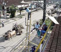 La recuperación en el municipio de Abréus, no espera por el denodado esfuerzo de eléctricos y telefónicos. |