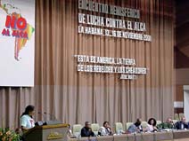 Un no al ALCA resonó en el Palacio de las Convenciones Joaquín Rivery y Mario Muñoz Lozano La realidad del continente americano, agobiado hoy por la crisis económica internacional y su secuela de males sociales, quedó de manifiesto ayer desde los momentos iniciales del Encuentro Hemisférico de Lucha contra el ALCA.