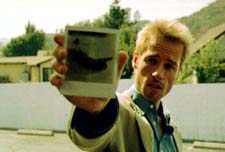 Y subrayo inteligente porque Memento, sin un espectador activo, lúcido, dispuesto a participar de principio a fin, no debe verse. De ninguna manera puede considerarse un mero ejercicio estilístico esta trama policíaca donde lo que se nos cuenta no es nunca lo que parece ser, matizada ella por el suspenso y una nerviosa cámara, que a ratos recuerda la técnica del video clip. Sin revelar esencias imperdonables para un tipo de cine negro, habría que subrayar que la estructura de Memento está plenamente justificada, ya que su protagonista es un hombre que ha perdido la memoria inmediata y para atar los cabos que lo lleven a descubrir al asesino de su esposa debe tomar fotos con una cámara Polaroid y anotar lo indispensable, porque en unos minutos lo habrá olvidado todo. Esta estética de la amnesia, para llamarla de alguna manera, es algo nunca antes visto en el cine. Porque si bien es cierto que filmes como Pulp Fiction y Reservoir Dogs, de Tarantino, realizaron aportes a la narración no lineal, el inglés Nolan le imprime a la utilización del tiempo y del espacio una connotación diferente y (aquí radica el gran mérito) plenamente justificada en lo artístico. El director de Memento, mediante la complejidad de esa urdimbre narrativa, es capaz de integrarnos a la historia desde la misma perspectiva mental del protagonista, ya que todo lo narrado es presenciado por este. Juega limpio Nolan y sus enlaces de la trama tienen una precisión matemática, aunque a primera vista tiendan a desconcertar. Que algunos elementos se nos podrán escapar, es cierto. Pero confieso que nunca antes sentí tantos deseos de volver a ver un filme de inmediato, como ahora, luego de comprender la amplia correspondencia existente en él entre contenido y forma, y el desafío lanzado por el director para que se participe en el ensamblaje de su proposición desde una mirada nada trillada. Conocido lo anterior, debe ir preparado al cine, o bien acompañado para discernir en susurros y enfrentar esta película llamada a escalar cimas, de guión complicado, cierto, pero que usted terminará agradeciendo, al estilo de esas capturas estimulantes por lo difícil. (Memento es el segundo