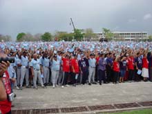 señor Bush Más de 400 000 orientales desafiaron con Fidel la lluvia en Holguín este sábado para en vibrante Tribuna Abierta de la Revolución rechazar el bochornoso y ridículo espectáculo protagonizado por el presidente norteamericano en Miami el pasado 20 de Mayo, y exigir el cese de las agresiones contra nuestro país y la liberación de los cinco héroes cubanos presos injustamente en Estados Unidos ALEXIS ROJAS AGUILERA Fotos: JUAN PABLO CARRERAS, FROILÁN PARRA Y LEONARDO RAMÍREZ