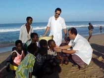 Los médicos generales integrales Anders del Río Aguilar, de Villa Clara; y Magdelidia Salazar Naranjo, de Camagüey, junto al estomatólogo espirituano Raúl Díaz Batista, han contribuido a la reducción de la mortalidad infantil. De un 27,7 por cada mil nacidos vivos la han llevado hasta 9,8. También ha aumentado el número de consultas intrahospitalarias y en la comunidad. Aquí no se conocía por parte de las autoridades que uno de los principales problemas de salud de la población es la hipertensión arterial. Junto a Anders, desarrollamos un trabajo sobre el tema en la jornada científica nacional. Para reducir tanto la hipertensión, como las muertes infantiles y maternas se ha dado seguimiento en consulta, con pesquisaje masivo en lugares, incluso, intrincados", apunta el Jefe de la brigada. Raúl, el dinámico secretario general del buró sindical del hospital provincial Camilo Cienfuegos, de Sancti Spíritus, regala a su colectivo de más de 2 000 trabajadores, una hermosa obra: como estomatólogo ha atendido más de 3 500 casos, incluidas extracciones, operaciones y hasta prótesis. El hombre sensible se revela al hablar de sus hijos Raúl y Raudel y de su esposa Tairí, "mi familia feliz, siempre juntos en el pensamiento y la vida en común". En su habitación sendas fotos confirman sus recuerdos. LA SEMILLA DE UN MÉDICO INTERNACIONALISTA Anders cuenta los días que le restan para estar de nuevo en Cuba y conocer y abrazar a su primera hija Melisa que nacerá este julio. A él le satisface el haber iniciado por vez primera aquí, junto a sus compañeros, el trabajo comunitario, el cual ha aumentado la cultura sanitaria de la población en la profilaxis frente a las enfermedades. En todas las comunidades que atienden, incluidas las lejanas Bomigo y Tunu, durante dos años han mantenido cero muertes materna e infantil. Casi todas las mujeres han presentado embarazos de riesgo, sin embargo con la atención oportuna y las técnicas educativas que les enseñan, desarrollan partos exitosos. "Nos apoyamos para el pesquisaje en los líderes tradicionales comunitarios, con gran ascendencia sobre la población", reafirma Anders. Ellos nunca se habían atendido con un médico, al vivir en una aldea, y no disponer de dinero para trasladarse y pagar la consulta y las medicinas en el hospital regional. Al visitar estos lugares, en solo un día de labor, la brigada dio cobertura a más de 150 casos. MUJER Y VOZ DE AZÚCAR Llegamos a la casa de los médicos cubanos, rodeada de arena y cocoteros propios de esta zona costera, a unos 500 metros del hospital. Magdelidia, a menudo rodeada de niños, nos recibe afectuosa. Mujer menuda. Con 12 años de experiencia en el trabajo comunitario en su Sibanicú, Camagüey, lleva en la voz y gestos la impronta del azúcar. Ella prestó sus servicios médicos en la comunidad del central Siboney y en otros sitios.