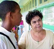 Ayer, mientras la mayor parte de los muchachos recibía las primeras clases, un grupo no menos deseoso de participar, estaba a la espera, reclamándole a la "profe" Dora (Eleodora Betancourt, la directora municipal del Censo en Alamar) su inclusión en el seminario, pues hasta ese momento habían sido considerados como una reserva. Entre esos insistentes por no quedar fuera, encontramos a Yurismel Santiesteban, alumno de politécnico en la especialidad de Comercio. Para él es muy importante incorporarse a esta "tarea de la Revolución, pues es mi deber como joven y como dirigente de la FEEM en mi escuela". Según indica Dora, todos los estudiantes de enseñanza media laborarán como enumeradores; en tanto, parte de los universitarios lo harán también en calidad de supervisores al tener más edad y preparación. "Una parte fundamental del seminario, explica, será el análisis al detalle de los cuestionarios que aplicarán, con el propósito de esclarecer todas las dudas posibles". Posteriormente, después de la práctica de campo, responderán una prueba a modo de diagnóstico, la cual dirá el grado de conocimiento de cada uno. "Pensamos, también, que los resultados de ese examen sean debatidos de conjunto para seguir profundizando el aprendizaje, y al final, entre los días 4 y 6 de septiembre, cada cual irá al área específica donde trabajará durante el Censo". En La Habana del Este se