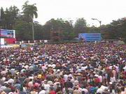Al igual que todos los que intervinieron en la concentración popular, el campesino Aldo Almaguer, exigió la inmediata liberación de los Cinco Héroes encarcelados injustamente en Estados Unidos, que sin un ápice de moral pretende erigirse como gendarme mundial en contra del terrorismo.