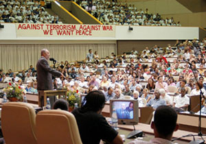 Fidel Castro con los más de 700 estudiantes, profesores y