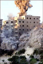 helicópteros un edificio de ocho pisos en esta ciudad cisjordana,