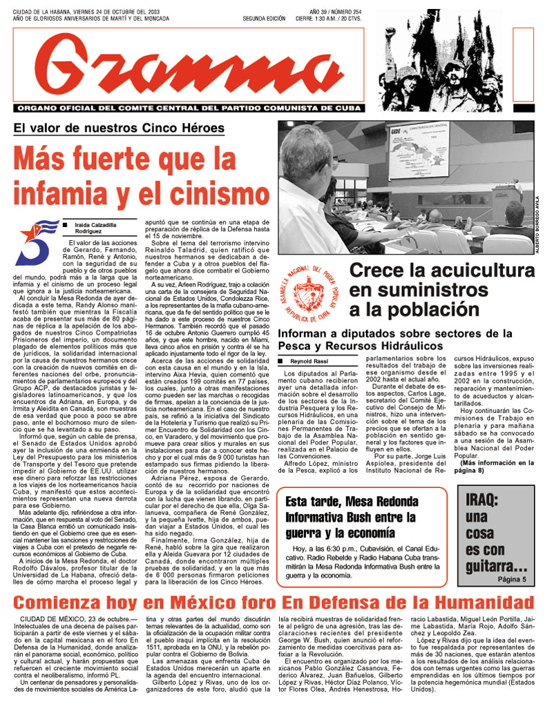 Hoy, a las 6:30 p.m., Cubavisión, el Canal Educativo, Radio Rebelde y Radio Habana Cuba transmitirán la Mesa Redonda Informativa Bush entre la guerra y la economía