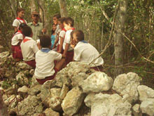 En los restos de una trinchera de piedras construida por los soldados españoles, ahora sepultada por el monte, la clase toca a su fin.