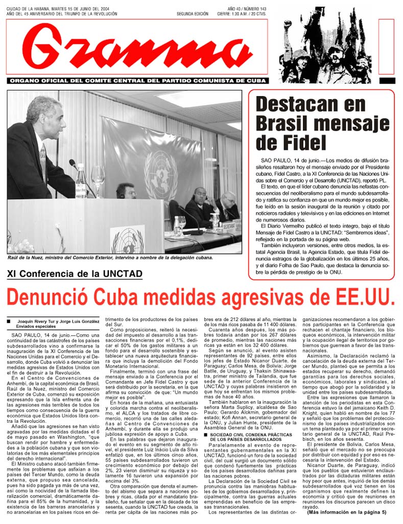Comercio y el Desarrollo, donde Cuba volvió a denunciar las medidas
