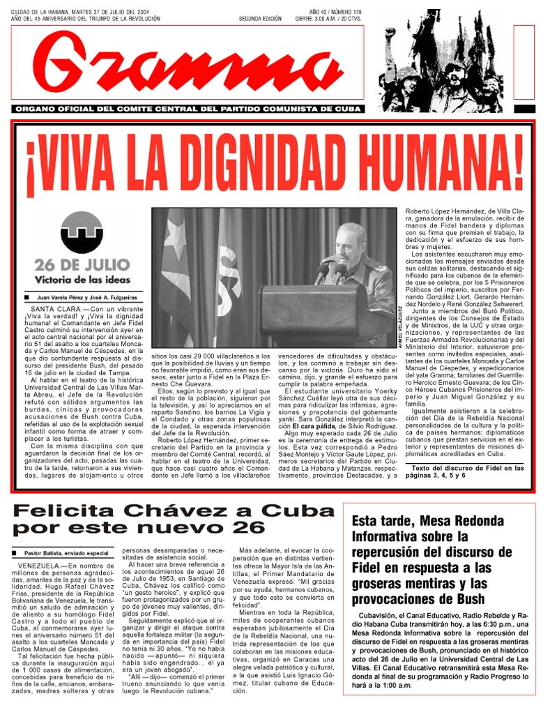 contundente respuesta al discurso del presidente Bush, del pasado 16