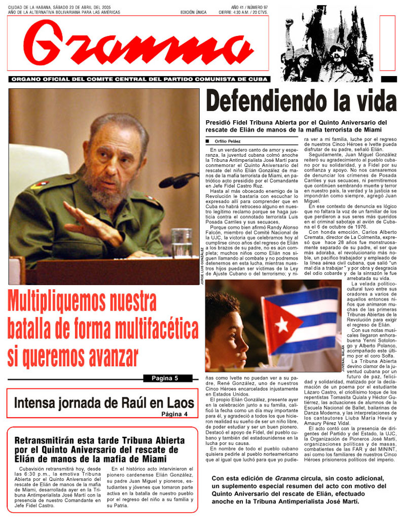 divulgadas tras el arribo a Cuba, el 28 de junio del 2000