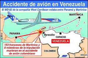 Carribbean que volaba en la ruta Panamá-Martinica y cayó en
