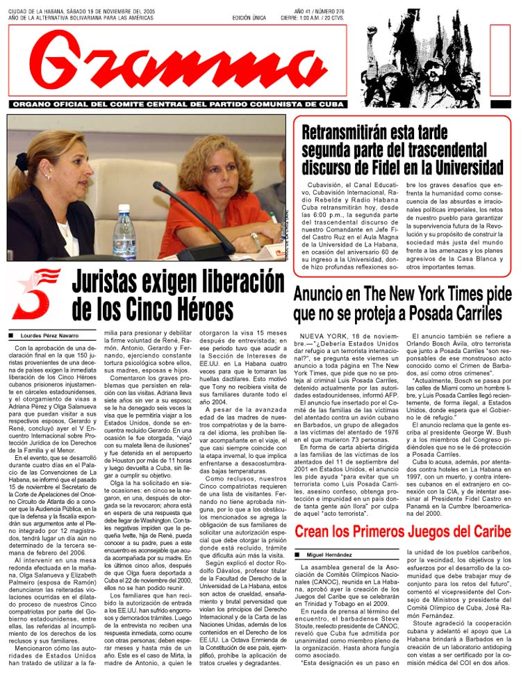 pide que no se proteja al criminal Luis Posada Carriles, detenido