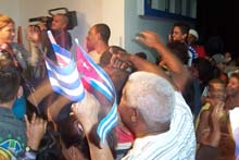 medio de lágrimas de alegría, besos, banderas cubanas y