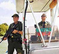 metros de internarse en Eagle Pass, Texas, miembros de la patrulla