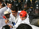 galenos, a los que no se les permitió entrar, gritaban consignas y