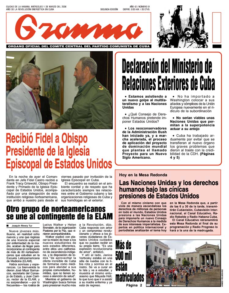 Recibió Fidel a Obispo Presidente de la Iglesia Episcopal de Estados Unidos