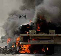 con explosivos en una cola de una gasolinera del barrio de Amina.