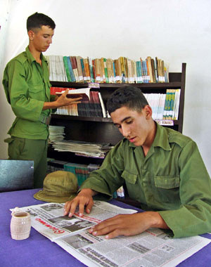 En la sala de lecturas los soldados encuentran espacio para la información.