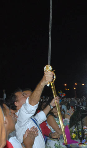 Daniel Ortega con la Espada de Bolívar, que le entregó Chávez.