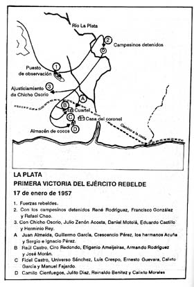 opuesta a la posición del cuartel. Fidel se adelanta con un grupo