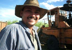 a los mandos de su combinada cañera, el joven operador (31 años de
